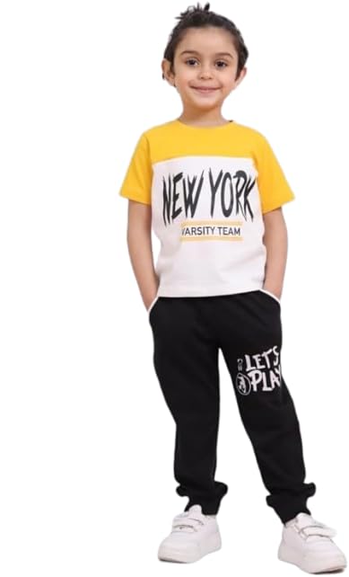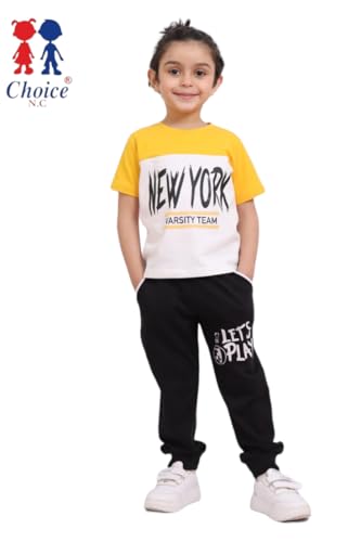 Choice N.C - طقم اولادي طباعة new york صيفي تيشيرت نص كم ليكرا قطن وبنطلون ميلتون قطن طقم عملي وعصري مريح للاستخدام اليومي code 623