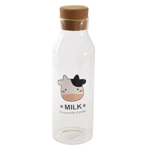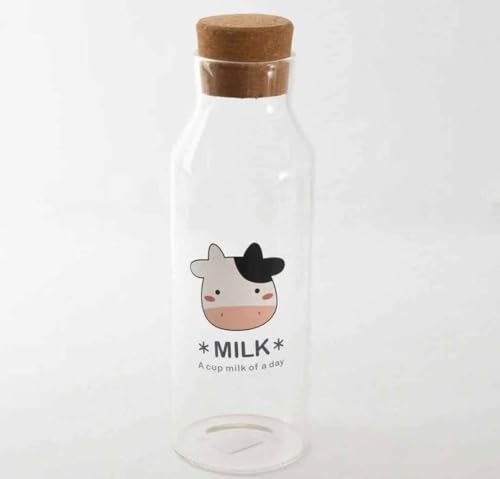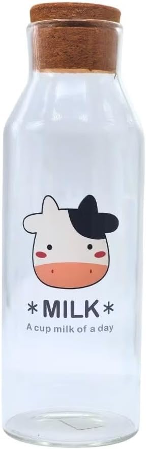 Next store - زجاجة على شكل حيوان لطيف بسعة 1200 مل من Next Store مع غطاء خشبي وغطاء فل للعصائر والمياه واللبن تصميم شفاف وعصري