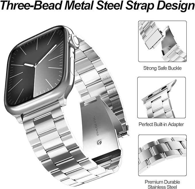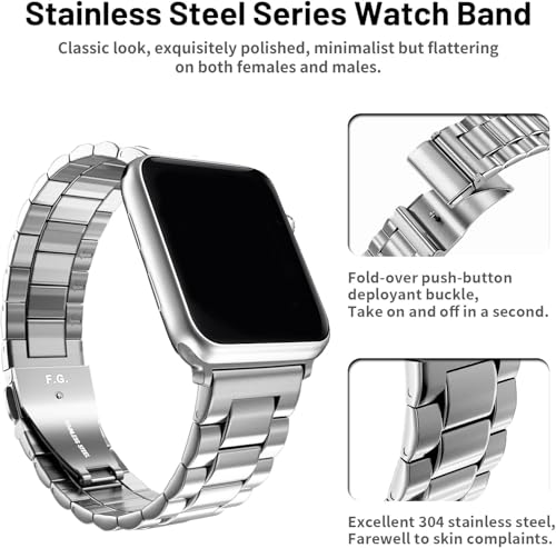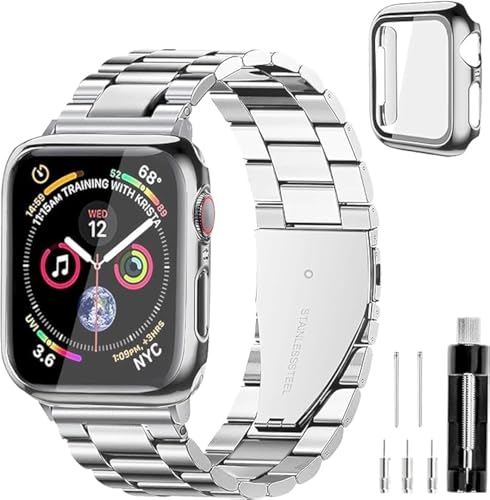 Next store - عبوة من قطعتين سوار معدني متين من الستانلس ستيل من Next Store مع حافظة شاشة من الزجاج المقوى لساعة اي واتش سيريس 6/5/4 مقاس 44ملم للرجال والنساء