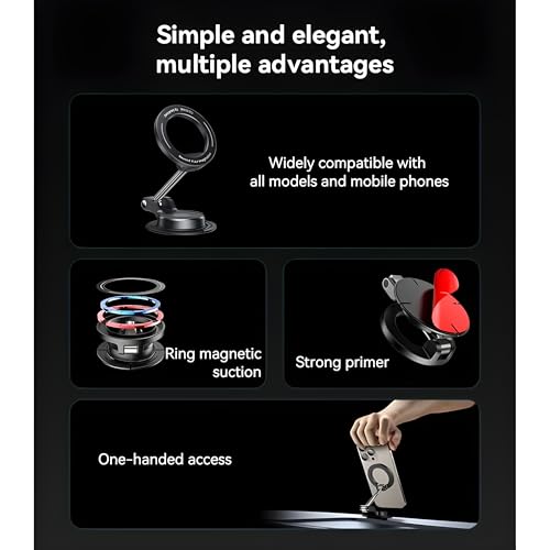 - [مغناطيس قوي لتثبيت فائق]: يأتي الحامل مزودًا بمغناطيس داخلي قوي يضمن تثبيت الهاتف بثبات تام، دون انزلاق أو سقوط حتى على الطرق الوعرة. مغناطيس عالي الجودة يوفر تجربة استخدام سلسة وآمنة، ويمنحك راحة في تثبيت الهاتف بيد واحدة فقط.