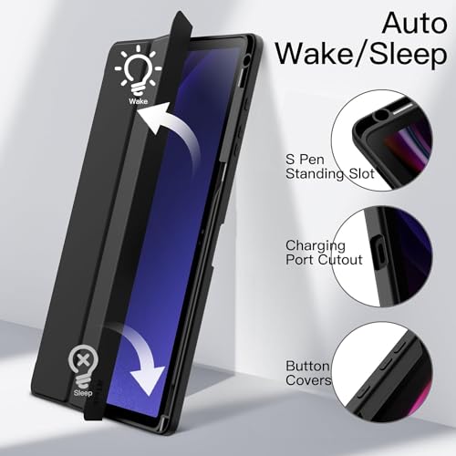 Next store - حافظة رفيعة متوافقه مع جهاز سامسونج جالكسي تاب S8 بلس 2022-S7 FE 2021-S7 2020 12.4 انش حامل قلم S خاصية التنبيه-السكون التلقائي بولي يوريثين تي بي يو كربونات من Next store اسود