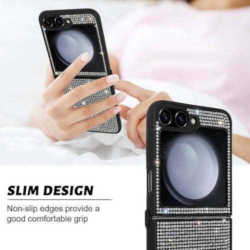 Next store - جراب حماية كامل لحماية كاملة مضاد للانزلاق ومقاوم للصدمات بتصميم لامع أنيق متوافق مع سامسونج جالاكسي زد فليب 5 للنساء والبنات من نكست ستور (لون أسود)