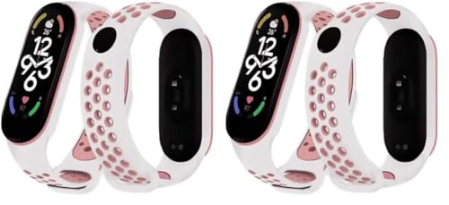 Next store - سوار معصم رياضي بديل متوافق مع شاومي مي باند 3 / مي باند 4 من نيكست ستور متوافق مع شاومي مي باند 3/4 (ابيض/بينك)، للبالغين من الجنسين (عبوة من قطعتين)