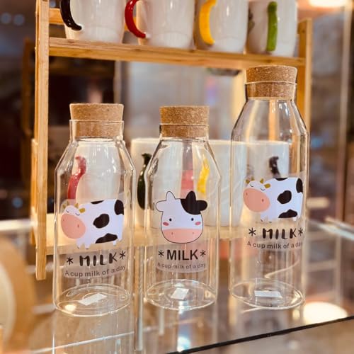 Next store - زجاجة لبن وعصير بايركس شكل البقرة من Next Store - قارورة زجاجية شفافة بغطاء خشبي محكم - دورق تقديم مياه ومشروبات بتصميم عصري وأنيق للمطبخ والثلاجة