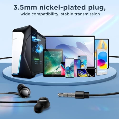 • توافق عالمي: تأتي مزودة بمنفذ صوت قياسي 3.5 مم، مما يضمن التوافق مع مجموعة واسعة من الأجهزة مثل الهواتف الذكية، الأجهزة اللوحية، أجهزة الكمبيوتر المحمولة، ومشغلات MP3، مما يجعلها الخيار المثالي لجميع احتياجات الصوت لديك.