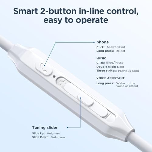 • ميكروفون وتحكم مدمجان: تتمتع هذه السماعة بميكروفون مدمج، مما يمكنك من استقبال المكالمات بسهولة، بالإضافة إلى التحكم في الموسيقى، تعديل الصوت والوصول إلى المساعدين الصوتيين مباشرة من الكابل، مما يجعلها مريحة ومرنة في الاستخدام اليومي.