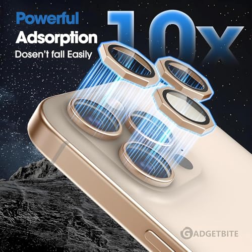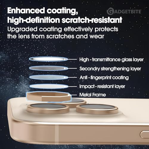 Next store - واقي عدسة كاميرا بشكل سداسي هندسي من Next Store متوافق مع iPhone 16 Pro Max – غطاء كاميرا من الزجاج المقوى 9H مع حلقة معدنية ، مقاوم للخدوش و الصدمات. (تيتانيوم صحراوي)