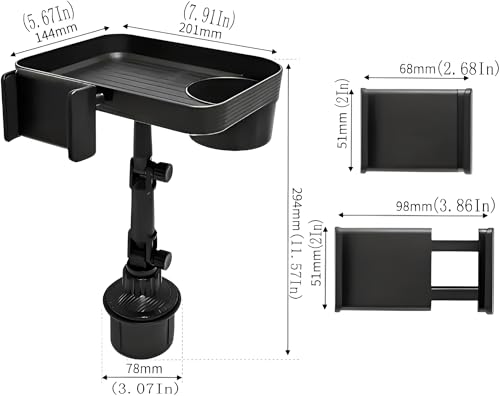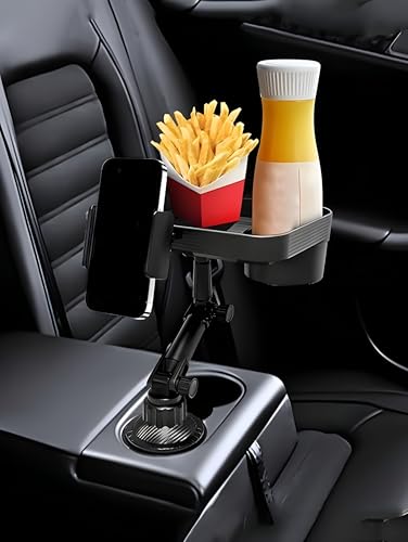 - [وظائف متعددة في منتج واحد:] يجمع بين موسع لحامل الأكواب، وحامل للهاتف، وصينية صغيرة لتناول الطعام، مما يجعله حلاً عمليًا للاستخدام داخل السيارة أثناء الرحلات.