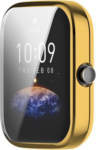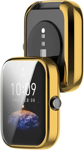 Next store - جراب ساعة مقاوم للصدمات والخدوش من السيليكون الناعم والبولي يوريثين المقاوم للحرارة، بحماية كاملة لساعة امازفيت بيب 3/3 برو من نيكست ستور، (لون ذهبي)