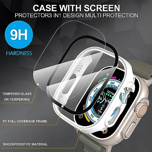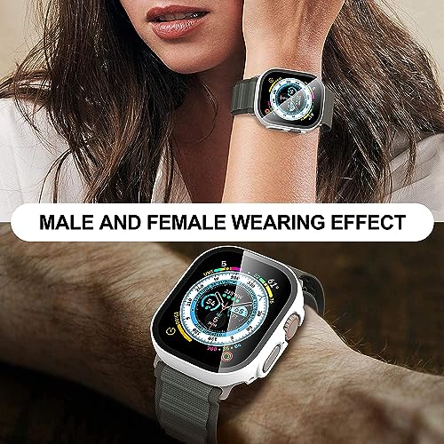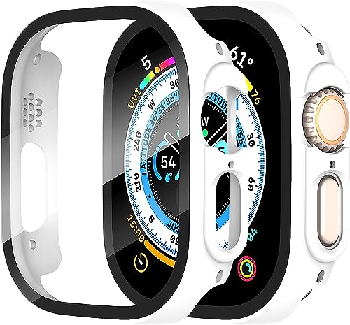 Next store - شاشة حماية من الزجاج المقوى متوافقة مع ساعة أبل الترا 49 ملم هيكل البولي كربونات الصلبة فائق النحافة ومضاد للصدمات جميع الجوانب لساعة اي ووتش أبيض - نيكست ستور