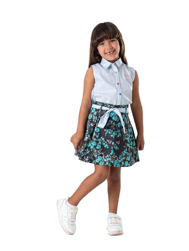NIÑOS - طقم تنورة بتصميم زهور للبنات الصغيرات من نينوس - ازرق