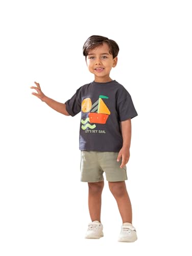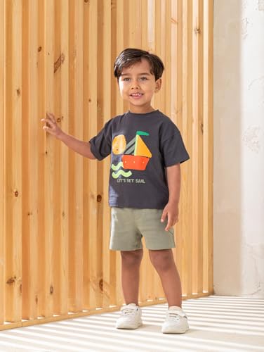 NIÑOS - بيجامة صيفية قطن للأولاد بتصميم سادة من نينوس، 6-9 شهور، رمادي غامق وأخضر