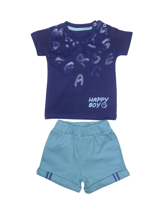 NICE BABY - طقم تيشرت كاجوال قطن 486 مع شورت من نايس بيبي مكون من قطعتين من 3 الى 6 - كحلي