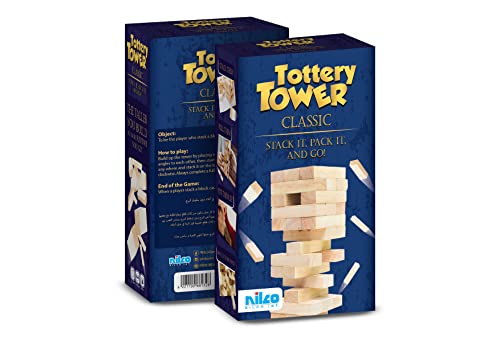 • نبذة عن المنتج: يمكنك بناء البرج بوضع صفوف من ثلاث مكعبات خشبية في الزوايا اليمنى إلى جانب بعضها بعضًا، ثم ابدأ اللعب بإزالة قطعة واحدة من أي مكان ولصقها فوق البرج.