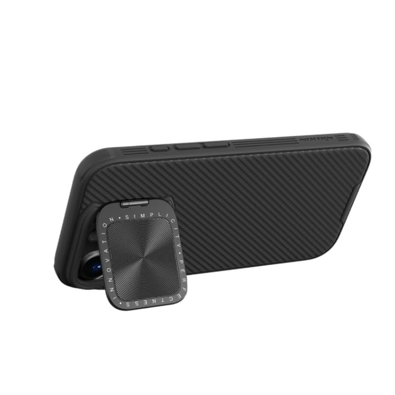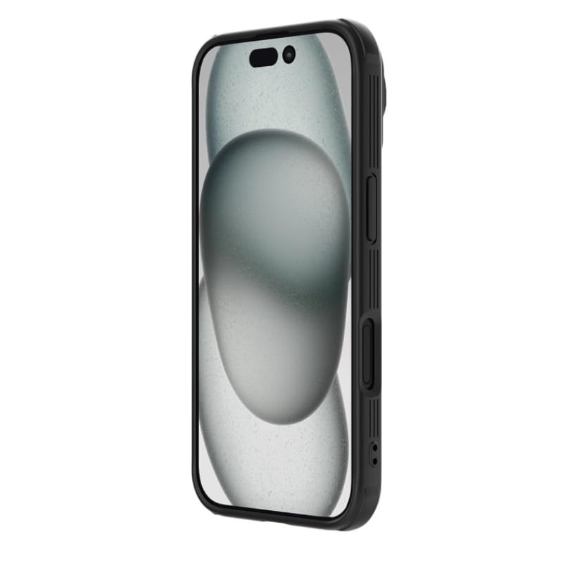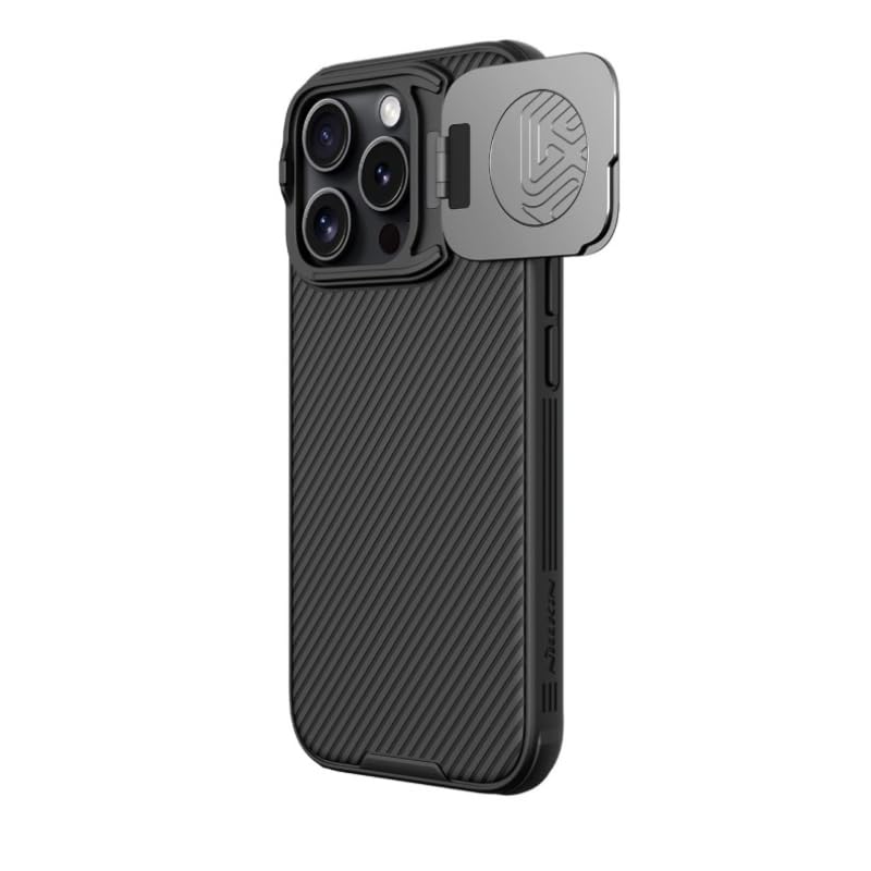 Nillkin - جراب حماية كام شيلد متين ومضاد للصدمات مع حواف ناعمة من البولي كربونات والبولي يوريثين المقاوم للحرارة الممتص للصدمات وغطاء كاميرا منزلق لحماية الكاميرا لموبايل آبل آيفون 16 برو من نيلكن، لون أسود
