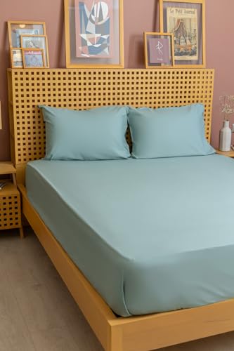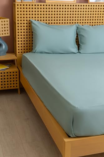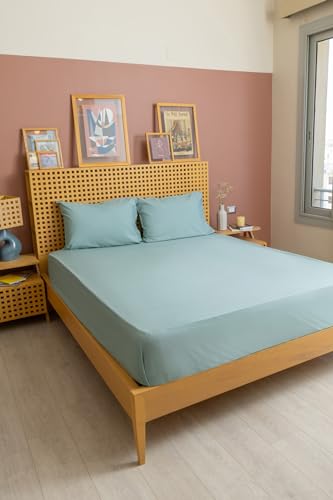 nit - طقم ملاية سرير باستك بلون اخضر فاتح سادة - 100٪ قطن مصري من نيت، عدد الخيوط: 300، كينج