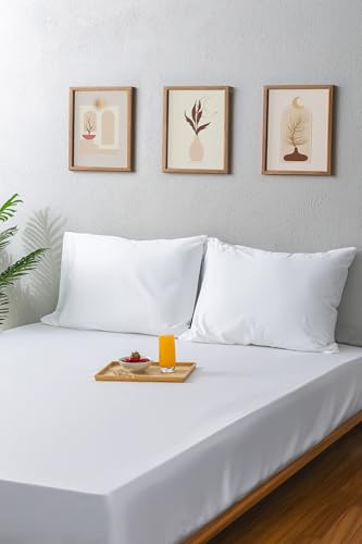 nit - شرشف بحواف مطاطية بلون ابيض سادة من نيت - (400 تي سي) 100% قطن مصري - ابيض، مقاس كوين