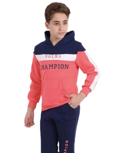 nolma - بيجامة شتوية من سويت شيرت بغطاء للرأس وبنطلون للأولاد من نولما لعمر 6 - 12 سنة، كود 364 (أزرق، 8)