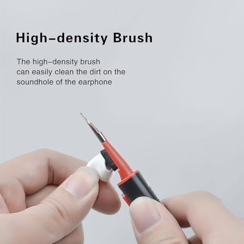 - تنظيف شبكة الصوت: هذه الأداة مجهزة بمكون ذو شعيرات ناعمة، وتسمح لك بتنظيف ثقوب مخرج الصوت والأجزاء الصغيرة الأخرى من سماعات الأذن بسهولة. تقوم الـ فرشاة عالية الكثافة بكنس الأوساخ وشمع الأذن من الشبكة بفعالية، مما يساعد على استعادة جودة الصوت والنظافة.