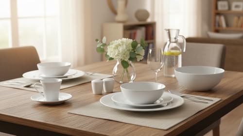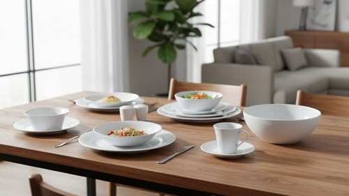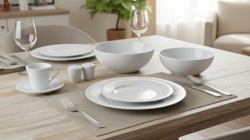 • 6 أطباق مسطحة بمقاس 27.5 سم و6 أطباق عميقة بمقاس 23 سم.