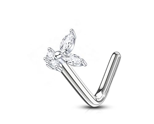 BIJOUX BEAUTIQUE - مجوهرات ثقب على شكل حرف L على شكل بتلات الأنف - فضي