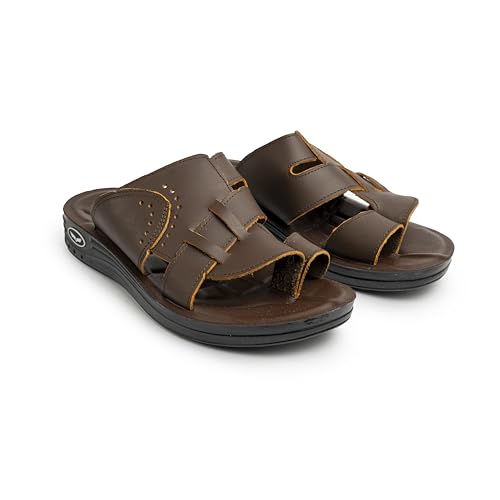 Now Shoes - صندل جلد أسود مريح للرجال، تصميم حزام متشابك مع تثبيت إصبع القدم، مفتوح من الأمام موديل F3 من ناو