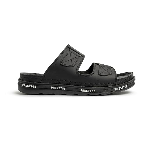 Now Shoes - صندل جلد فاخر بتصميم مريح مع شريطين إغلاق فيلكرو لملاءمة محكمة ونعل متين للرجال من ناو شوز، موديل 5001