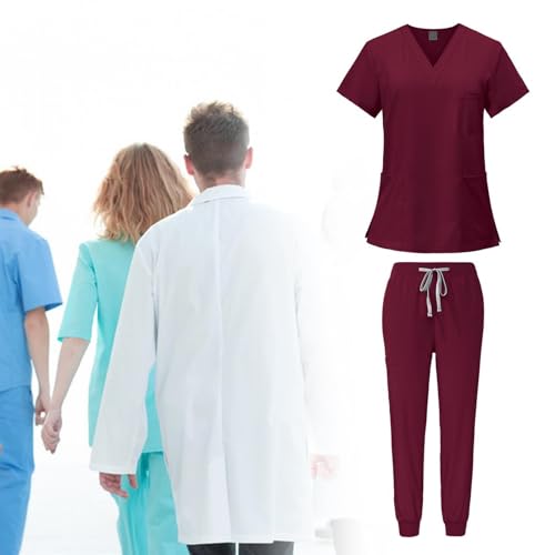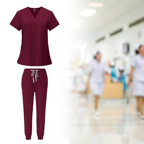 Yiju - طقم ملابس عمل للتمريض، ملابس عمل ناعمة وجيدة التهوية باستك عند الخصر، ملابس عمل للممرضات وملابس العمل والسبا للعناية بالحيوانات الاليفة