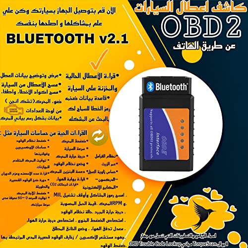 Generic - جهاز قياس للكشف عن اعطال السيارة وعدادات السيارات V2.1 - مع حافظة معدنية فضية وكتالوج - OBD2 ELM327 - V2.1 - اصدار بلوتوث - Android وويندوز - ماسح ضوئي للسيارة