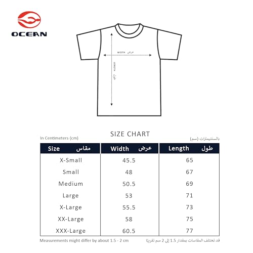 Ocean - تيشيرت قطن 100% سادة برقبة دائرية بلوجو للارتداء اليومي والجيم وممارسة الرياضة والارتداء غير الرسمي من اوشن، مقاس مخصص، صنع بفخر في مصر