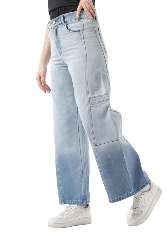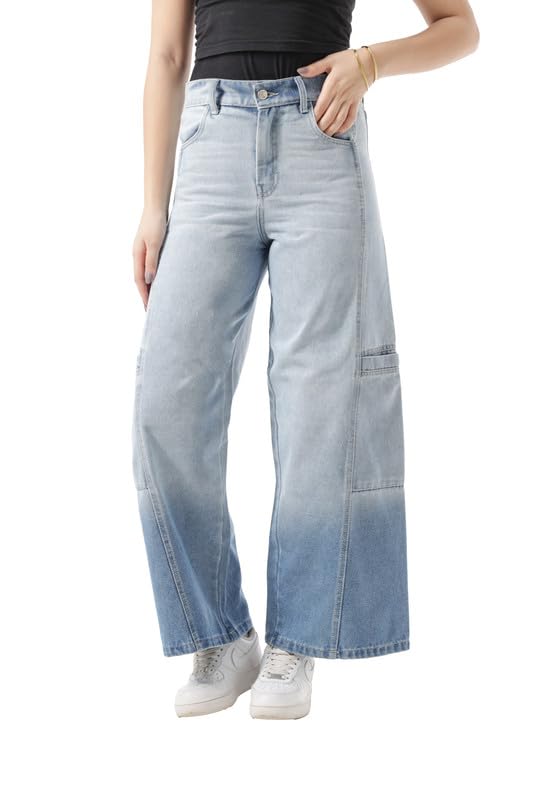 ODILA - بنطلون جينز بارجل واسعة للبنات من اوديلا، OD-902-بيرنت