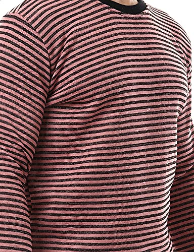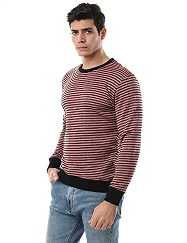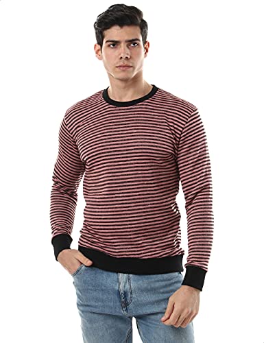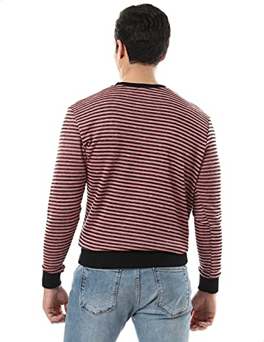 Off Cliff - سويت شيرت قطن للرجال من اوف كليف مخطط بحواف استك واكمام طويلة ورقبة دائرية ضيقة