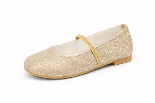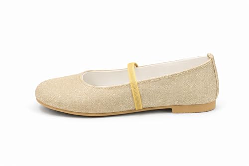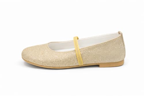 OG - حذاء باليرينا فلات جليتر ذهبي للبنات مع حزام أستك – حذاء حفلات لامع للأطفال، حذاء فلات رسمي مريح وخفيف الوزن ذهبي من او جي