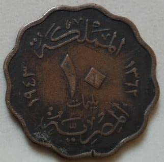 Generic - عملة معدنية قديمة فئة 10 مليمات إصدار 1943 مع صورة فاروق الأول ملك مصر