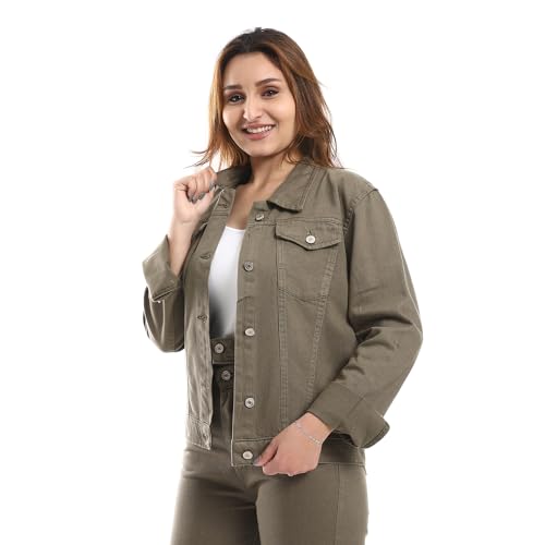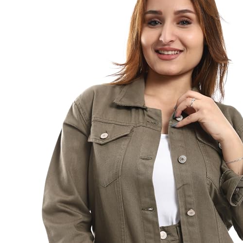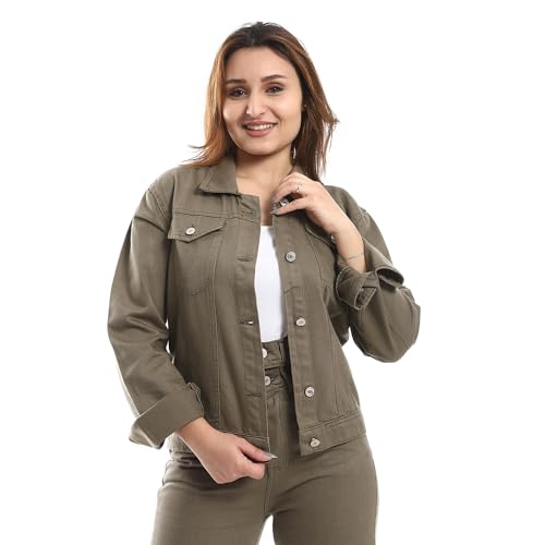 Generic - جاكيت جينز قصير زيتي - للنساء
