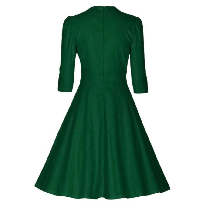 Generic - فستان قطيفة مع زر أمامي، لون أخضر زيتوني نساء