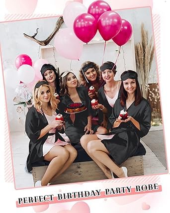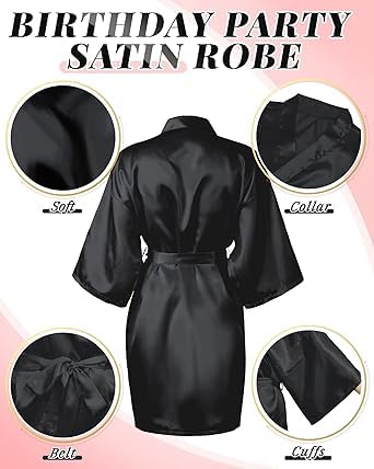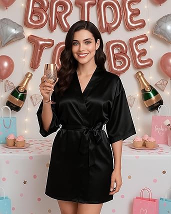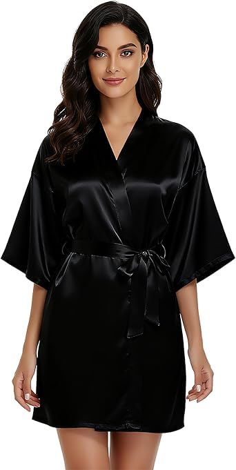 Generic - روب ساتان قصير باكمام واسعة للنساء باللون الاسود بجودة ممتازة وان سايز90:50 كيلوجرام