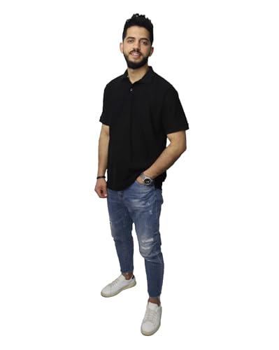 OneHand - تيشرت بولو بيسيك كاجوال من القطن، اسود, أسود للرجال