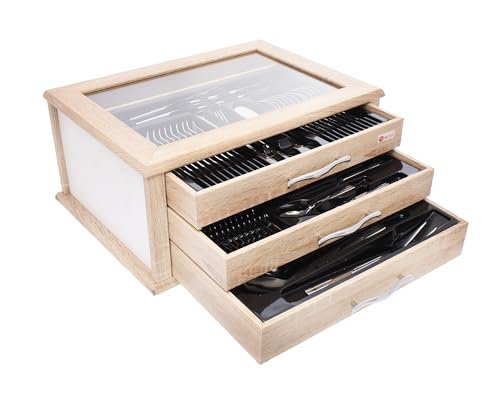 H-Home - طقم ملاعق تركية مع حافظة خشبية من اونون، 90 قطعة، جانيز