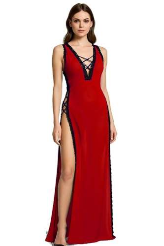 Generic - قميص نوم لانجيرى طويل مفتوح من الجانبين