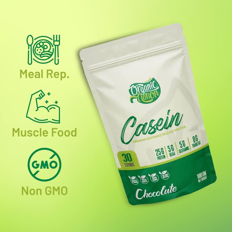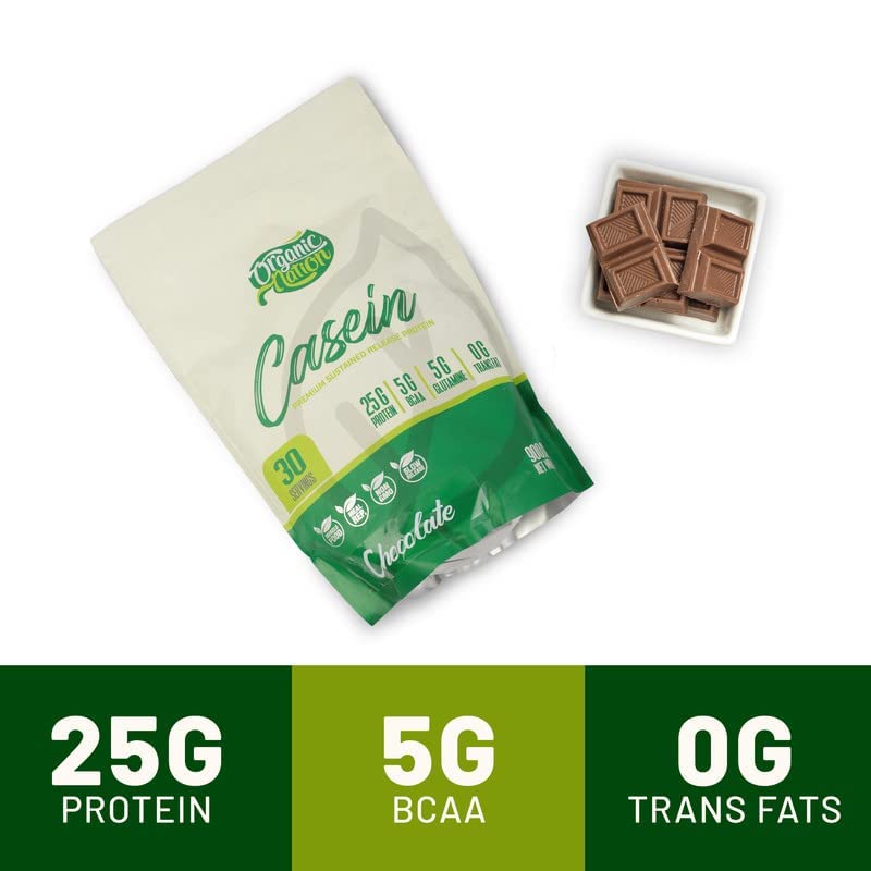 Organic Nation - اورجانيك نايشن | كازين | غير معدل وراثيا | مصدر بروتين عالي | يعزز نمو العضلات | يعزز جهاز المناعة | يساعد في الاستشفاء | 900 جرام | 25 جرام بروتين | 30 حصة | شوكولاتة