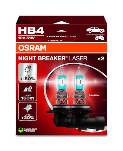Osram - لمبة فانوس أمامي 9006 نايت بريكر ليزر، طقم بزيادة إضاءة 150% للسيارات من اوسرام