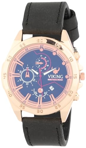 Otherrs - ساعة جلد للرجال بلون أسود بشعار فايكينج