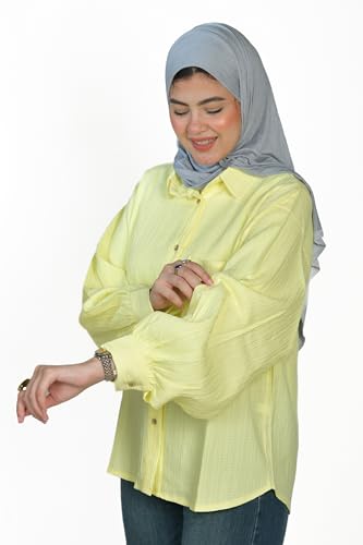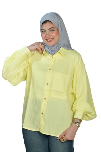 Generic - شميز حريمى اوفر سايز خامة فريسكا - اصفر