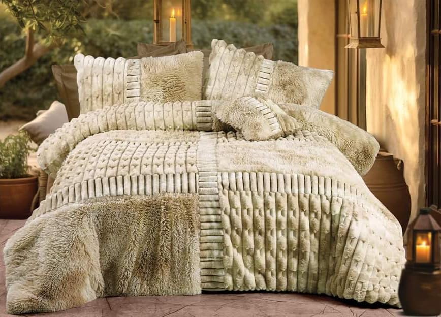 Generic - لحاف سرير كبير الحجم - 3 قطع فرو نوفا | لحاف فرو بيج 3 قطع
