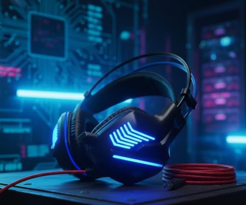 Ovleng - سماعة رأس للألعاب اوفلينج GT61 مع ميكروفون بخاصية إلغاء الضوضاء، صوت محيطي ستيريو ثلاثي الأبعاد، تحكم في مستوى الصوت، متوافقة مع أجهزة الكمبيوتر وماك وأجهزة تشغيل ألعاب الفيديو الرقمية - أسود وأزرق