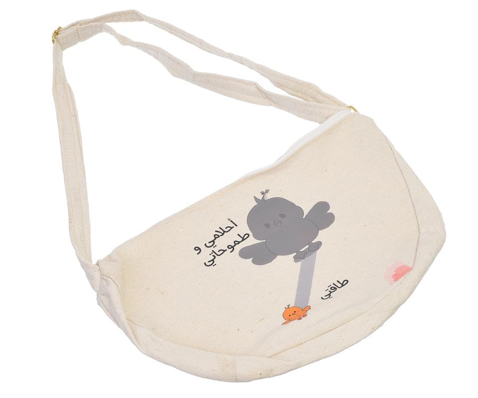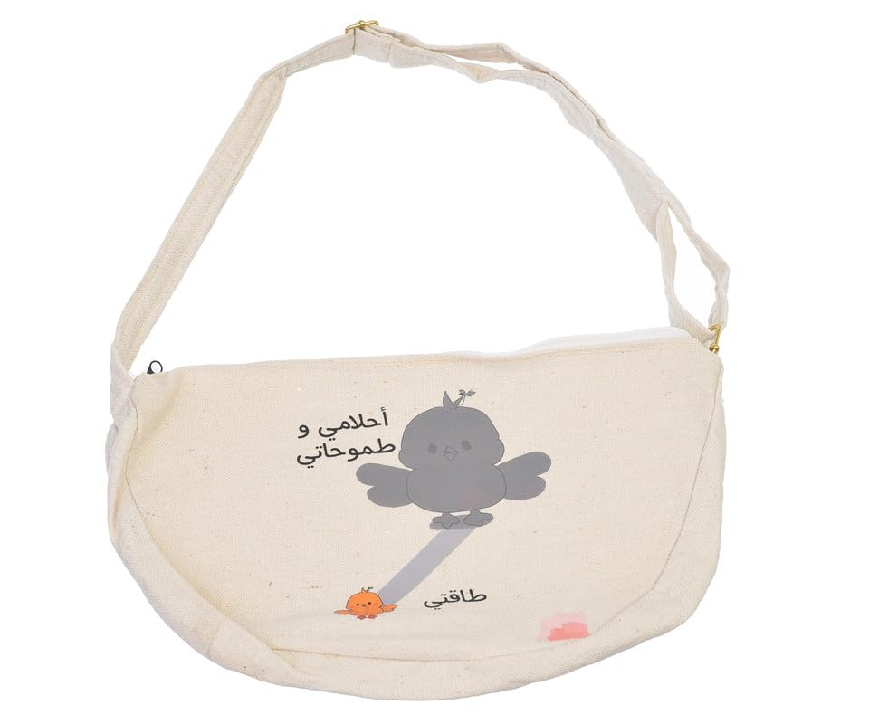 OX - شنطة خصر من القماش بطباعة عبارات هزلية مع سوستة للنساء، اوف وايت OX W-1
