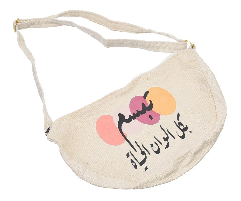 OX - شنطة خصر قماشية موضة مطبوع عليها عبارات هزلية مع سوستة للنساء من او اكس، لون أبيض عاجي - W-50