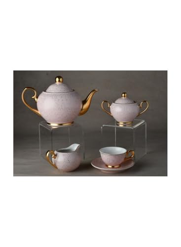 generic - طقم قهوة اكسفورد، 17 قطعة، زهري THKH034