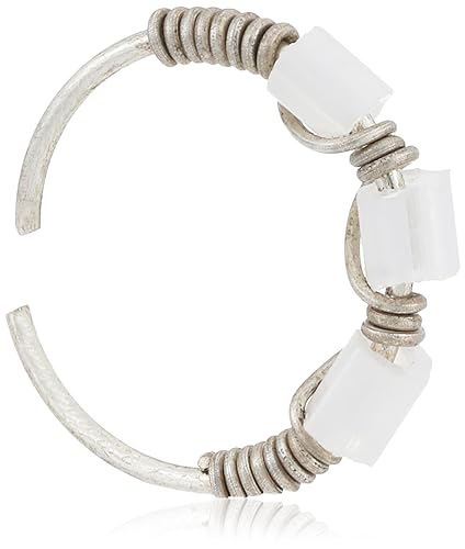 P for piercing - حلق انف بيرسينج من الفضة الخالصة مزين بخرز للنساء من بي فور بيرسينج، باللونين الفضي والابيض, Free Size, بدون أحجار كريمة